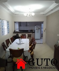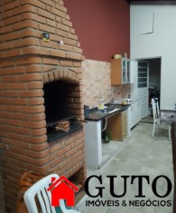 Casa térrea com 02 dormitórios, salas de estar e jantar, cozinha com armários,02banheiros internos, edícula com churrasqueira e quarto de despejo com banheiro, garagem coberta para 03 carrros com portão eletrônico.